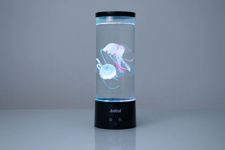 Ta lampka to nie jest oświetlnie to przede wszystkim relaksujący teatr wizualny. Lampka i-Total to produkt wykonany solidnie, z dbałością o szczegóły o oryginalnym designie. Lampa z pływającymi meduzami świeci miękkim, ciepłym światłem i tworzy hipnotyzujący efekt wizualny. Pływające w środku meduzy, które ciągle zmieniają swoje położenie przyciągają wzrok i tworzą niesamowity efekt w pomieszczeniu. Lampa ozdobi zarówno wnętrza prywatne jak i publiczne, poczekalnie czy restauracje tworząc niesamowitą kojącą atmosferę.