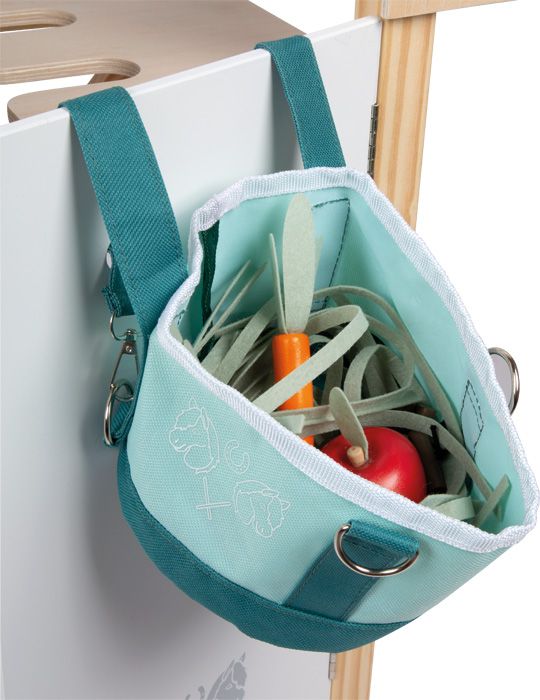 Praktyczna torba z uchwytami pełni nie tylko funkcję przechowywania, ale także może zostać szybko zamieniona w koryto dla konika. Wystarczy odpiąć uchwyty i przymocować ją do stajni, ogrodzenia lub innego miejsca, tworząc jeszcze bardziej realistyczne warunki zabawy – zarówno w domu, jak i na świeżym powietrzu.