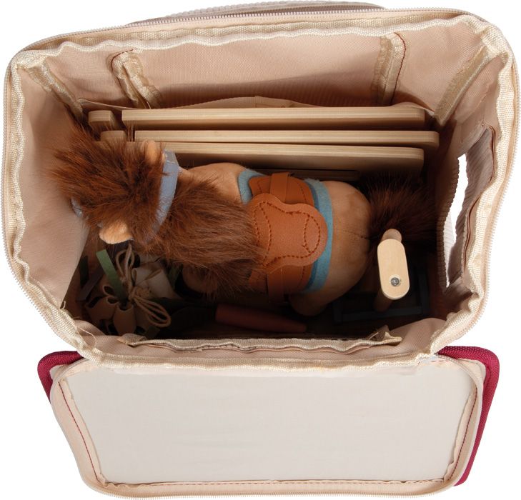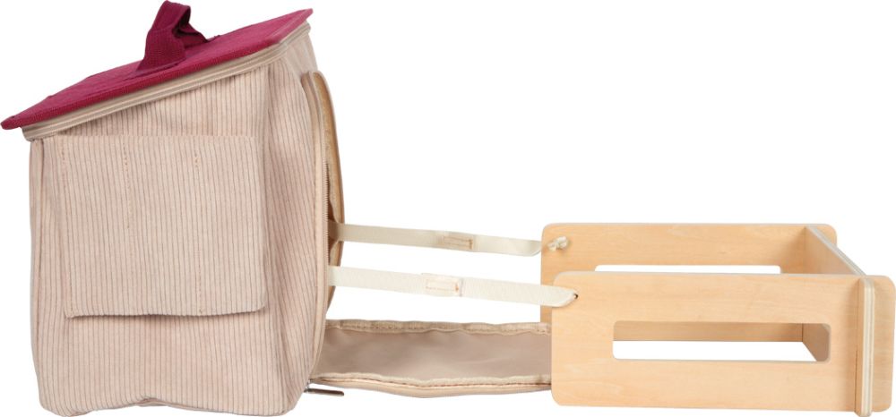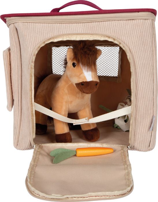 - wytrzymałą sztruksową torbę, która zamienia się w stajnię