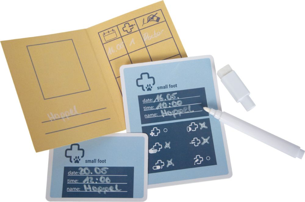 W zestawie znajduje się wszystko, co potrzebne w małym gabinecie weterynaryjnym: stetoskop, termometr, otoskop, strzykawka, bandaże, obroża ochronna, a także tablet ze zdjęciami rentgenowskimi różnych zwierząt. Dodatkowe elementy, takie jak pęseta do usuwania kleszczy, leki, karta szczepień czy formularze wizyt, sprawiają, że zabawa staje się jeszcze bardziej realistyczna. Praktyczna torba pełni podwójną funkcję – jest zarówno wygodnym transporterem dla królika, jak i poręczną walizką lekarską, która pomaga utrzymać porządek i umożliwia zabawę w dowolnym miejscu. Dołączony marker pozwala uzupełniać karty pacjentów, wspierając rozwój mowy oraz zrozumienie podstaw opieki nad zwierzętami.