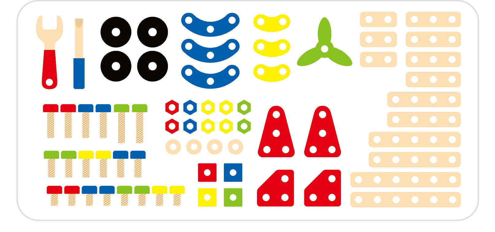Zestawy konstrukcyjne, które również służą do składania, ale bez śrubek tylko z elementami łączącymi to również dobra zabawka dla przedszkolaków, a nawet starszych dzieci. W każdym z zestawów znajdują się różne materiały i elementy do łączenia ze sobą drewnianych konstrukcji, gumowych kół i innych elementów. W tych zestawach nie trzeba co prawda używać narzędzi, ale wyobraźnię tak, bo ilość kombinacji jest nieograniczona.
